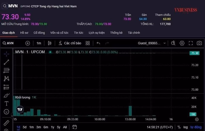 Trong phiên giao dịch ngày 15/1, cổ phiếu MVN (Mã: VIMC) đã phá vỡ xu hướng giảm chung của thị trường, tăng trần liên tiếp lần thứ hai và chạm mức 73.300 đồng/cp. Dù mức này vẫn còn xa so với đỉnh gần 90.000 đồng/cp ghi nhận vào tháng 2/2025, nhưng vốn hóa thị trường của VIMC đã tăng hơn 20.000 tỷ đồng chỉ trong hai phiên, đạt hơn 88.000 tỷ đồng.
